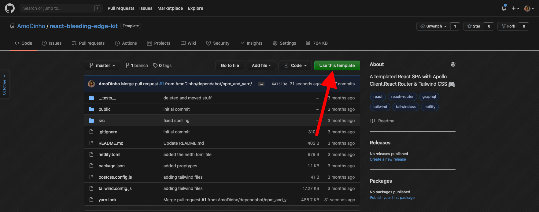 So first thing we got to do is go to Github and use the kit as a templete: